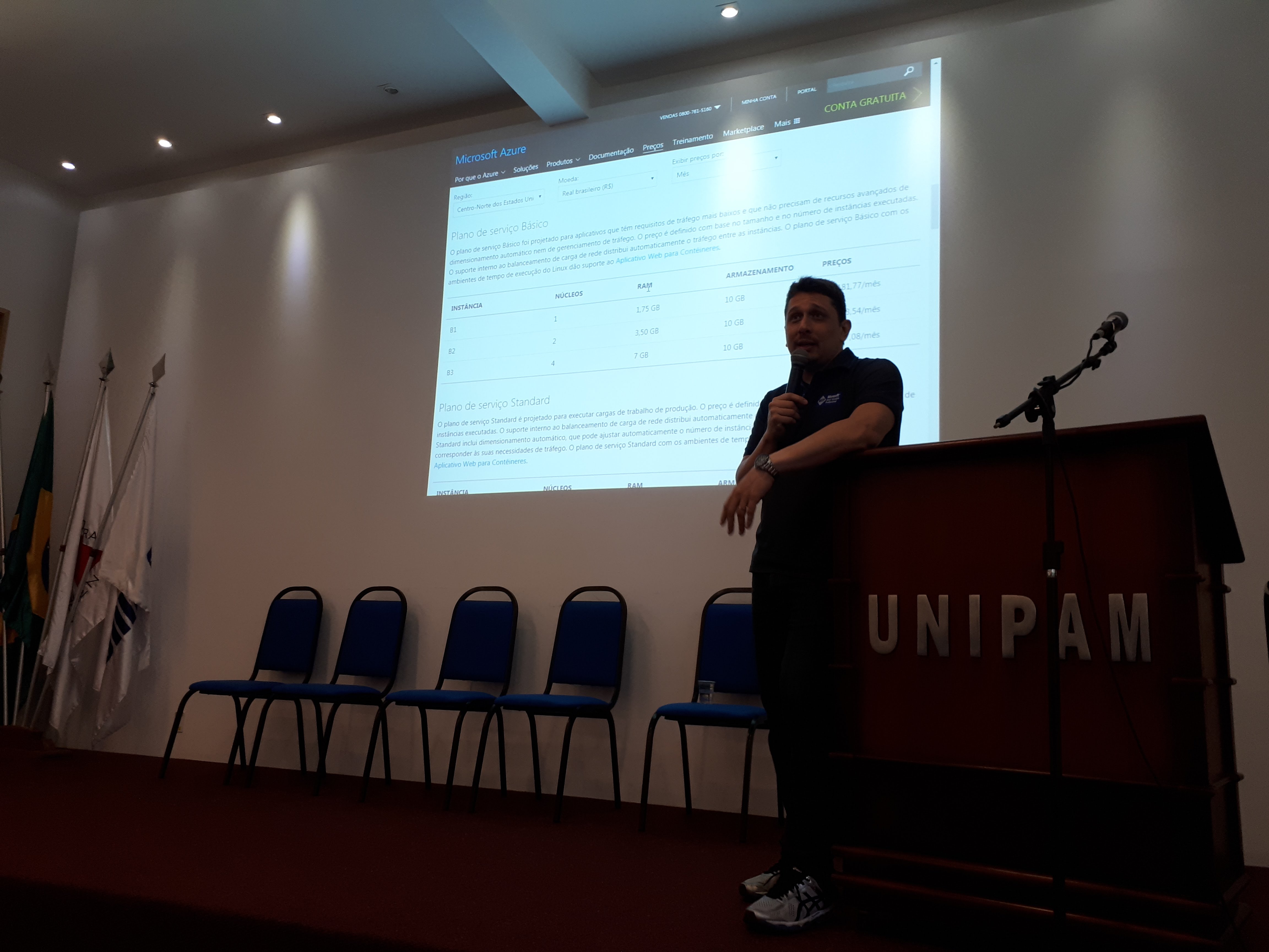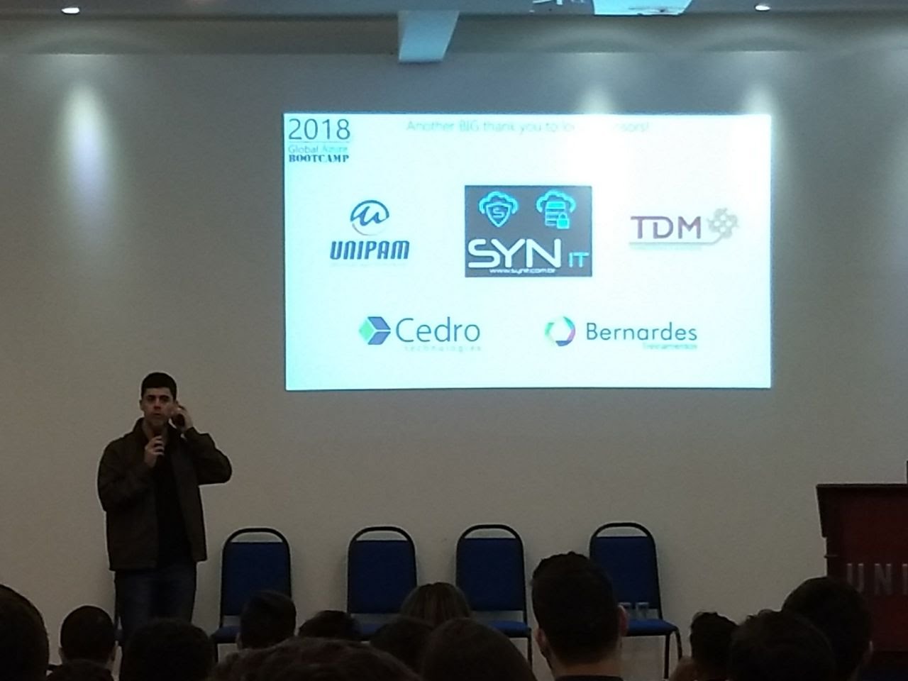 Quero deixar um agradecimento para o UNIPAM que disponibilizou o espaço e uma estrutura fantástica para o evento. A CEDRO, a SYN IT e a TD MATIAS por subsidiar os custos do evento e ajudar na organização. E não posso deixar de agradecer também o Rafael Bernardes que saiu do Rio de Janeiro (e olha que ele recebeu vários convites para palestrar e esse dia) para passar um pouco do conhecimento dele para quem participou do 2º Global Azure Bootcamp de Patos de Minas.