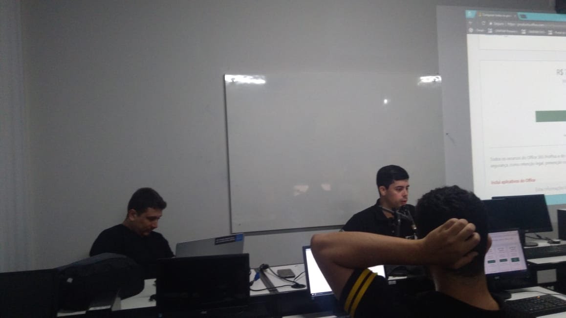 Flávio demonstrando algumas funcionalidades e produtos do Office 365.
